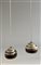 Coppia di piccole lampade a sospensione in terracotta smaltata verniciata marrone, grigio e bianco. (h cm 16)