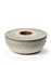 Vaso doppio con foro cilindrico centrale. Italia, anni '70. Ceramica smaltata in bianco e grigio. Marcato "CA" sotto la base. (h cm 9,5; d cm 24)