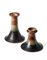 Due portacandele. Italia, anni '70. Grès lavorato al tornio e parzialmente smaltato in nero-crema e bruno. (h max cm 15)