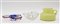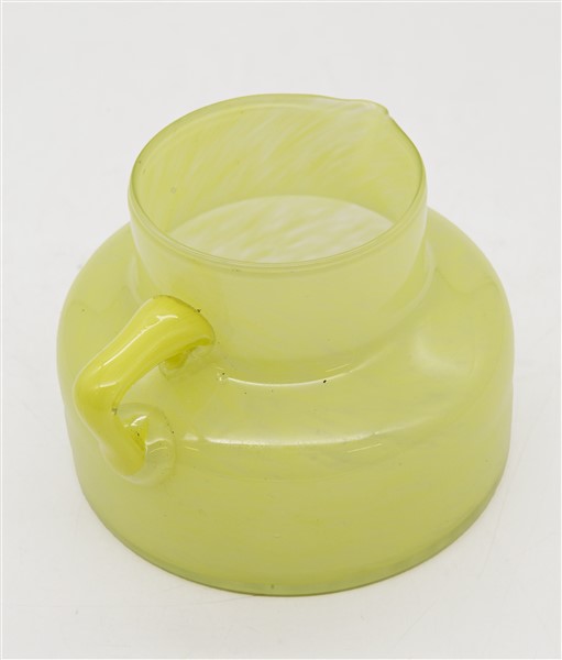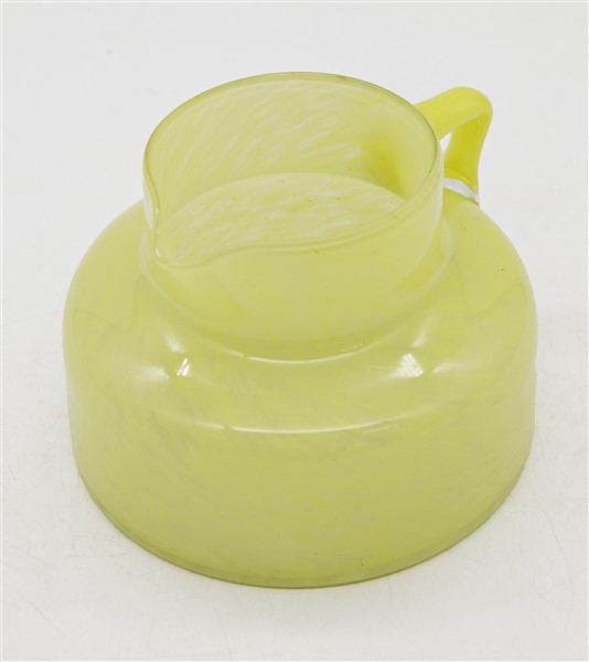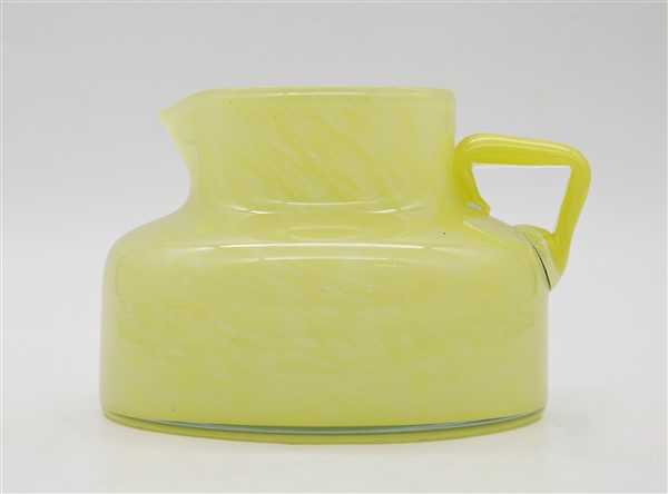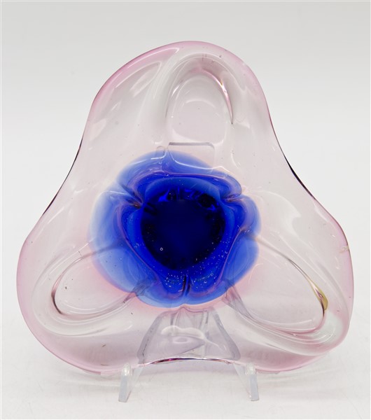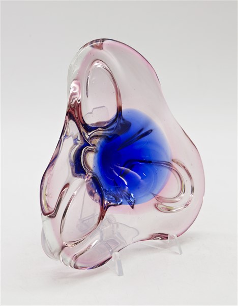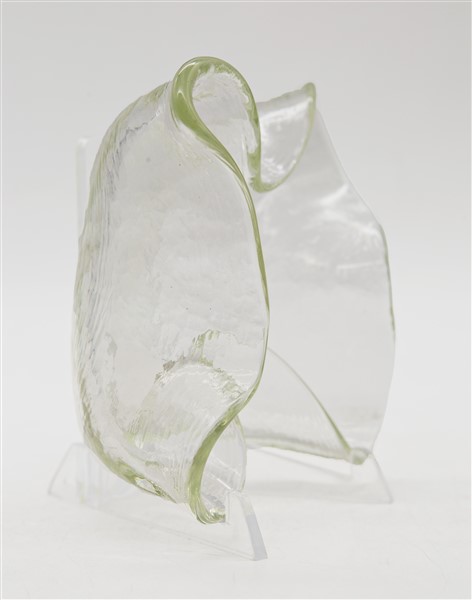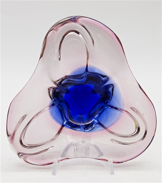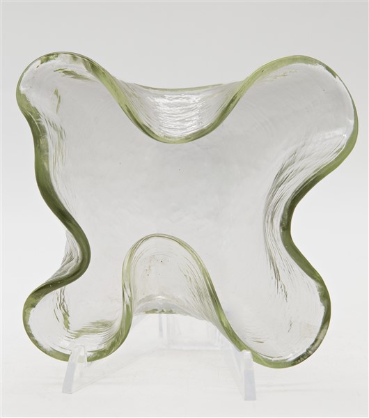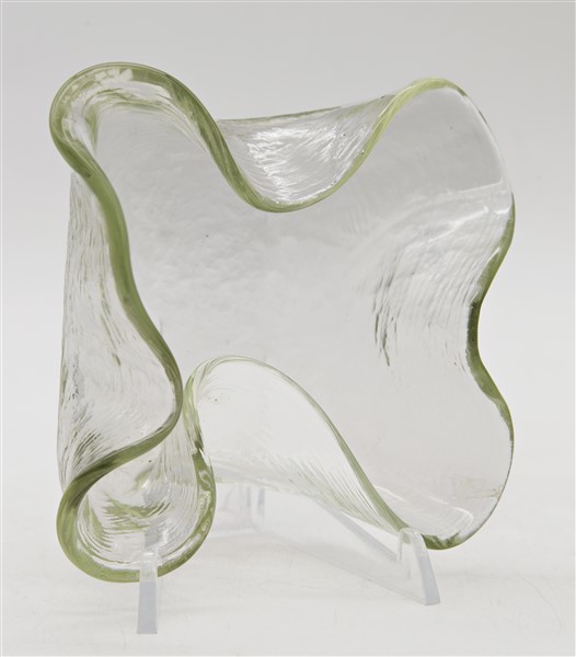 Lotto composto da due centrotavola e una brocca in vetro. Firmata alla base "L.FRISSOLO". Seconda metà secolo XX. (h max cm 11) (lievi difetti)