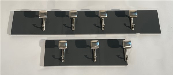 Attaccapanni da parete in legno laccato con sette elementi in metallo cromato (
