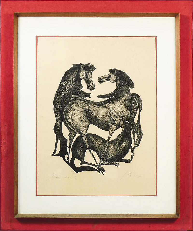 CAVALLI - HORSES INCISIONE - ENGRAVING prova d'autore, firmato, in cornice cm 64x48