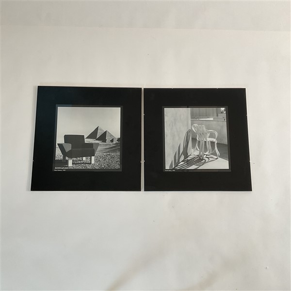 Gruppo di sei foto pubblicitarie di arredi di produzione Knoll. In cornice. Ita