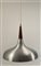 Lampada a sospensione in alluminio spazzolato sulla superficie esterna e verniciato bianco in quella interna e legno. Anni '90/2000. (h cm 35) (difetti)