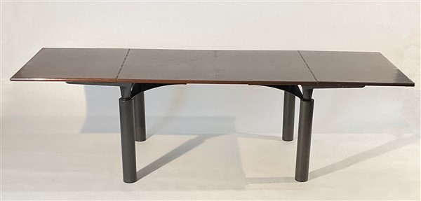 Francesco Binfarè Tavolo in frassino scuro con piano apribile ad alette, ripiani
