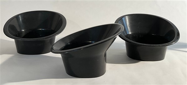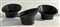 Lotto di tre poltroncine. Produzione Overman, Svezia, anni '70. Plastica nera. (cm 72x42x72) (difetti)