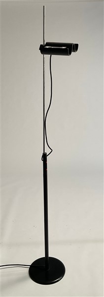 Lampada da terra. Produzione Oluce, anni '70. Metallo laccato nero e cromato. (h cm 230) (lievi difetti)