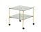 Tavolino modello "Biplano". Produzione Robots, Italia, 1972. Due ripiani in vetro fumè e struttura in tondino di metallo verniciato giallo. (cm 50x51x50) (lievi difetti e mancanze)