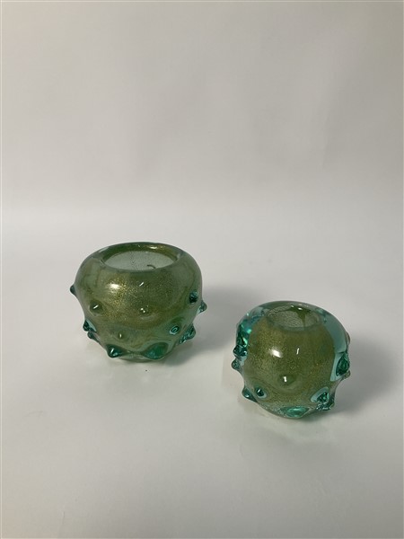 Manifattura di Murano Lotto di due piccole coppe in vetro a mugnoni, verdivo tra