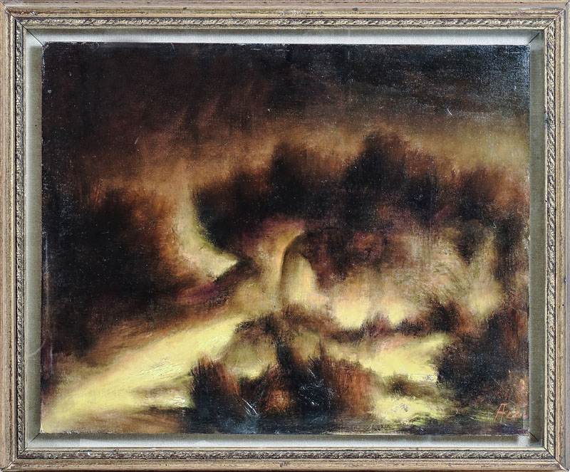 GIOVANNI ACCI (1910-1979) Bosco in fiamme - Forest Fire olio su cartone telato - oil on canvas board, firmato, in cornice cm 40x49