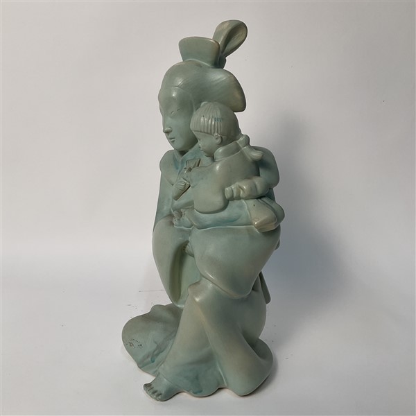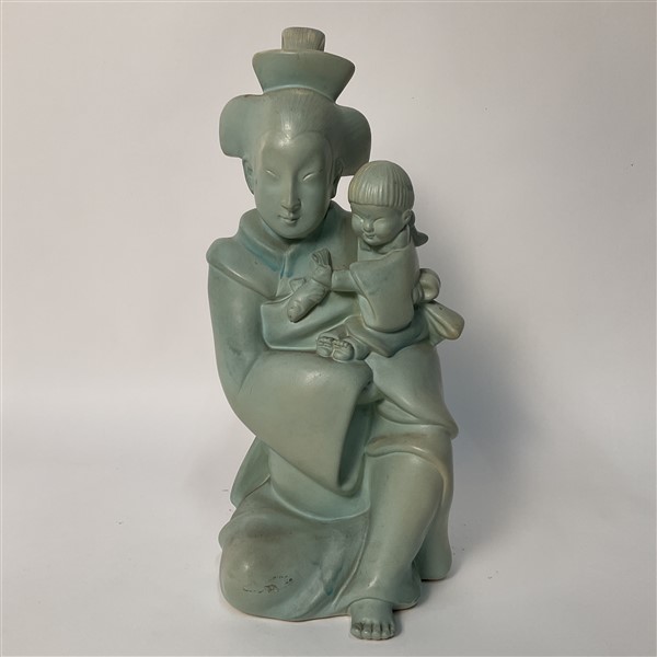 Lenci "Maternità giapponese" Scultura in ceramica smaltata opaca. Torino, secolo