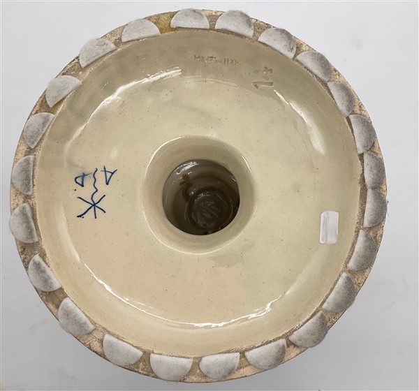 Manifattura di Bassano, inizio secolo XX. Vaso in maiolica bianca a balaustro c
