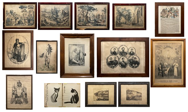 Lotto 1036 | Cartone contenente quindici diverse stampe e riproduzioni di diversa epoca e mi