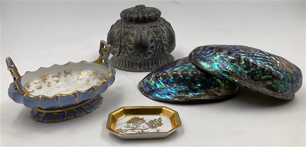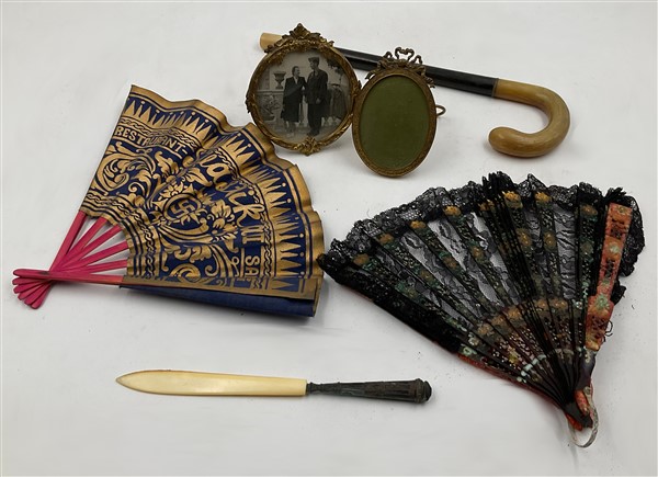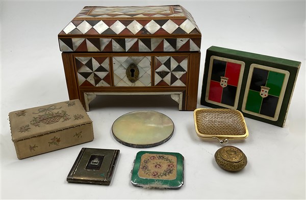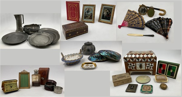 Cartone di oggetti vari di usi, decori e materiali diversi (difetti)