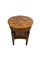 Tavolino impiallacciao e filettato in noce e radica con piano circolare, gambe