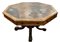 Tavolo di forma ottagonale in legni vari, piano con riserva in pelle impressa,