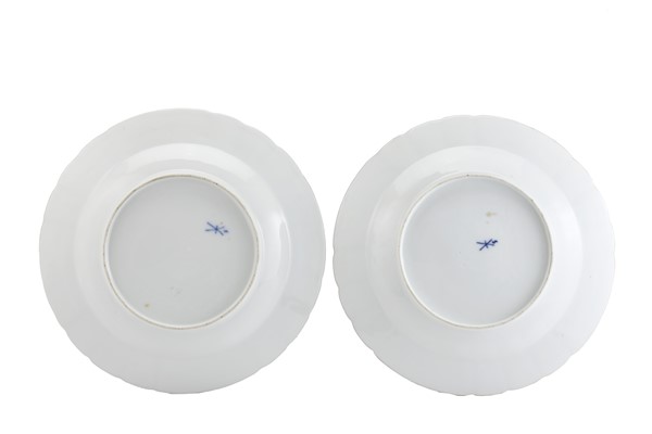 Manifattura di Samson, secolo XIX. Coppia di piatti a profilo mistilineo in por