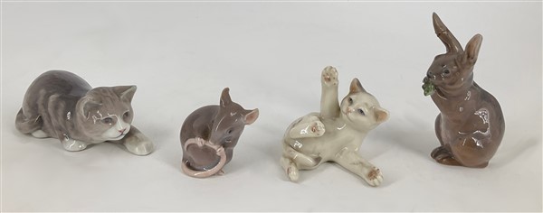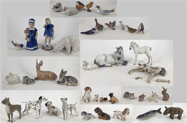 Manifatture differenti, tra le quali Royal Copenaghen. Lotto composto da numerose e diverse figurette in porcellana policroma raffiguranti animali. In due cartoni (difetti, piccoli restauri e rotture)
