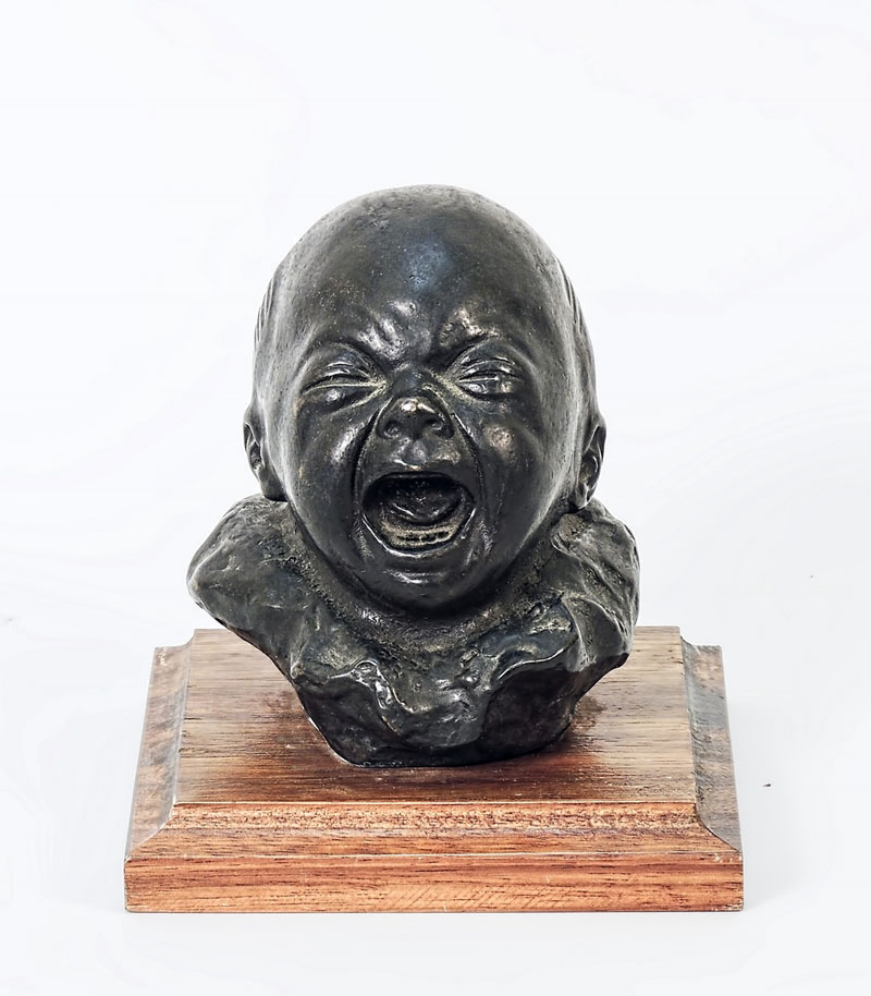 TESTA DI NEONATO PIANGENTE - HEAD OF CRYING BABY Scuola napoletana dell'inizio del XX secolo - Neapolitan School of early 20th Century scultura in bronzo - bronze sculpture firmata Uccello h cm 14