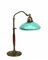 LUME DA TAVOLO IN OTTONE E LEGNO - WOOD AND METAL TABLE LAMP paralume in vetro verde, altezza regolabile