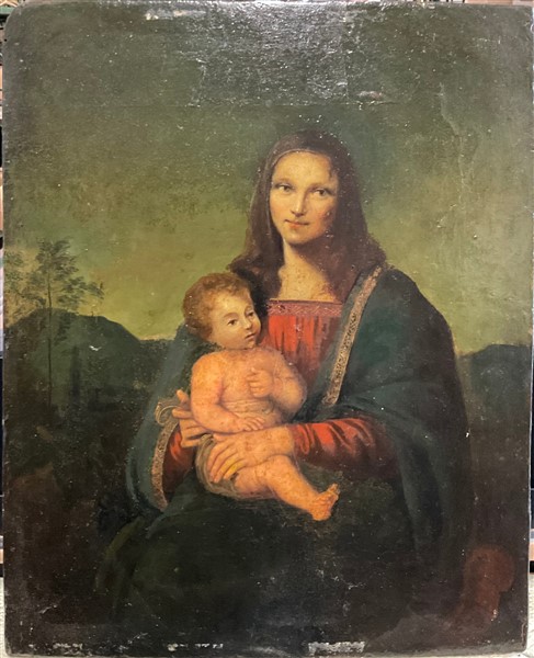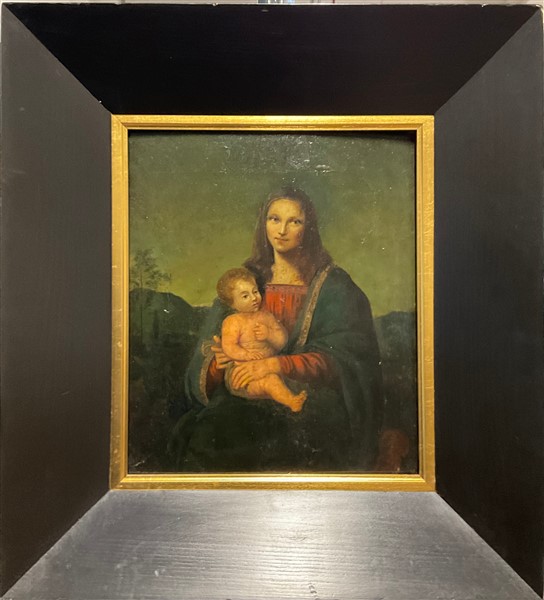Ignoto Antico dipinto raffigurante "Madonna col Bambino" olio su tavola (cm 34