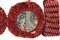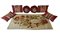 Lotto composto da un ricamo piccolo punto in lana con decoro floreale policromo su fondo crema, unito a sei cuscini confezionati in velluto bordeaux con frammenti di Gobelin di manifattura meccanica (cm max 175x96) (difetti e restauri)