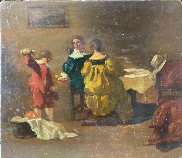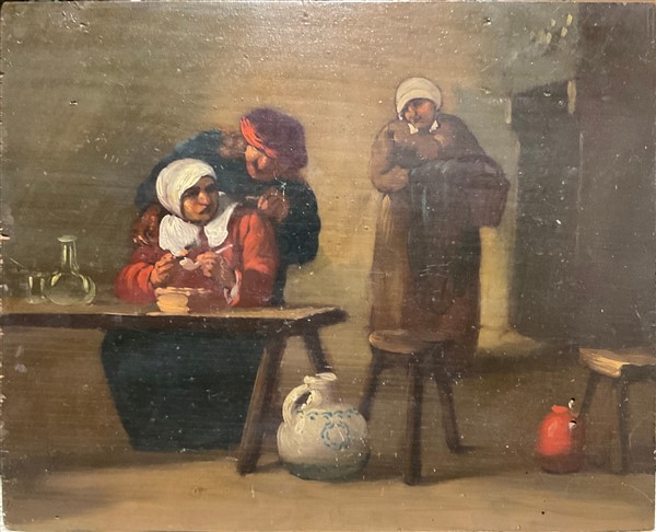 Alla maniera olandese del secolo XVII Cinque dipinti raffiguranti "Scene di ge