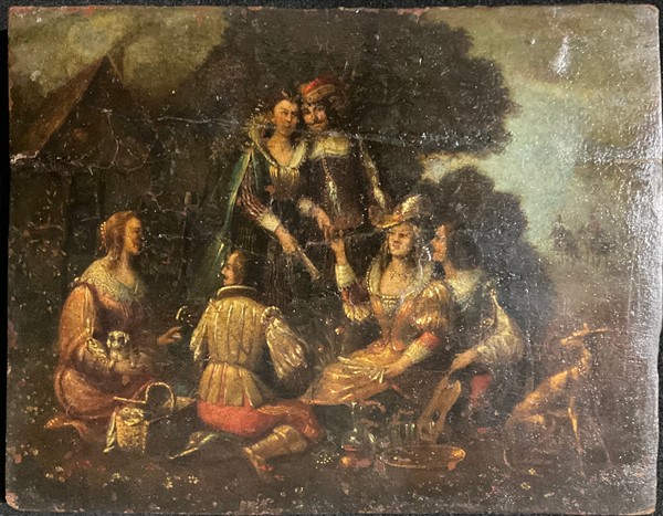 Scuola del nord Europa del secolo XVIII "Scena galante" olio su tavola (cm 21x