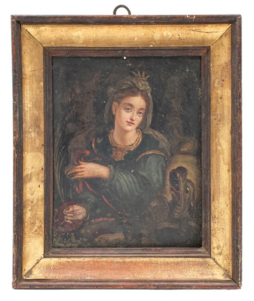 Ignoto Antico dipinto raffigurante "Santa Margherita" olio su rame (cm 18x14)