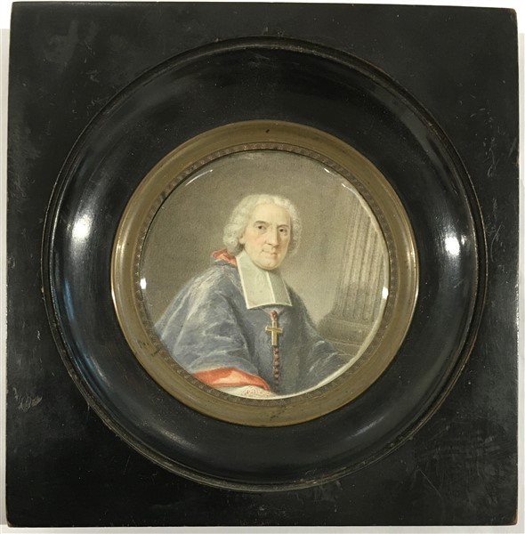 Claude Vezus (Francia, secolo XVIII) "Ritratto di prelato" acquerello su carta