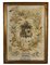 Ricamo in seta policroma e fili d’argento su fondo raso di seta beige. Decoro raffigurante lo stemma araldico della contessa Elena Stanga con iscrizione in basso al centro. Lo stemma è contornato da rami fioriti con garofani, gigli e volatili (cm 75x52), in cornice (difetti)