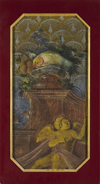 Gruppo di sei pannelli su tavoletta con cartelle dipinte a vaso di fiori, di fo