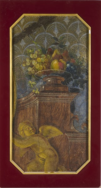 Gruppo di sei pannelli su tavoletta con cartelle dipinte a vaso di fiori, di forma ottagonale di cui due su pannello rettangolare (cm 36x40; cm 80x40) (difetti)