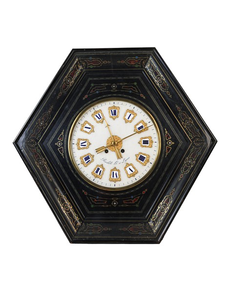 Quadrante in alabastro con cartouches in smalto a numeri romani.