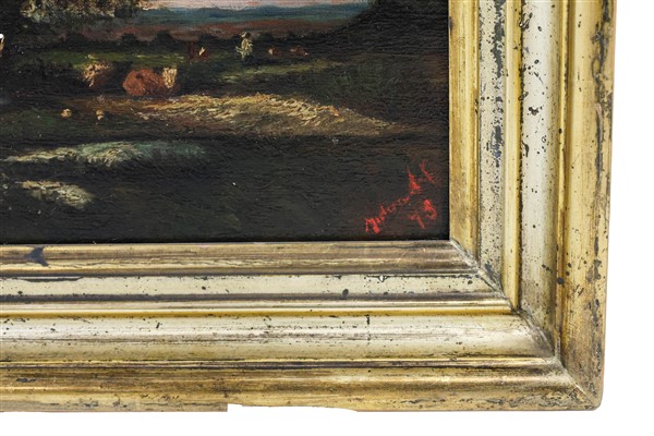 Ignoto del secolo XIX "Paesaggio con alberi" olio su tela (cm 26x37) reca fir