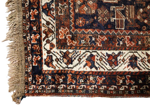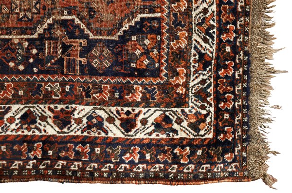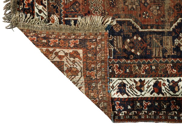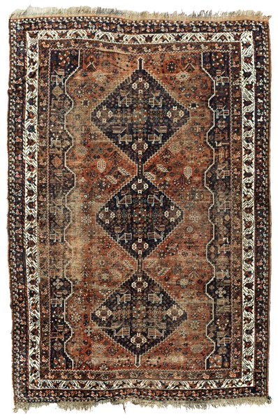 Tappeto Shiraz, Persia, fine secolo XIX. Decoro con 3 medaglioni romboidali a f