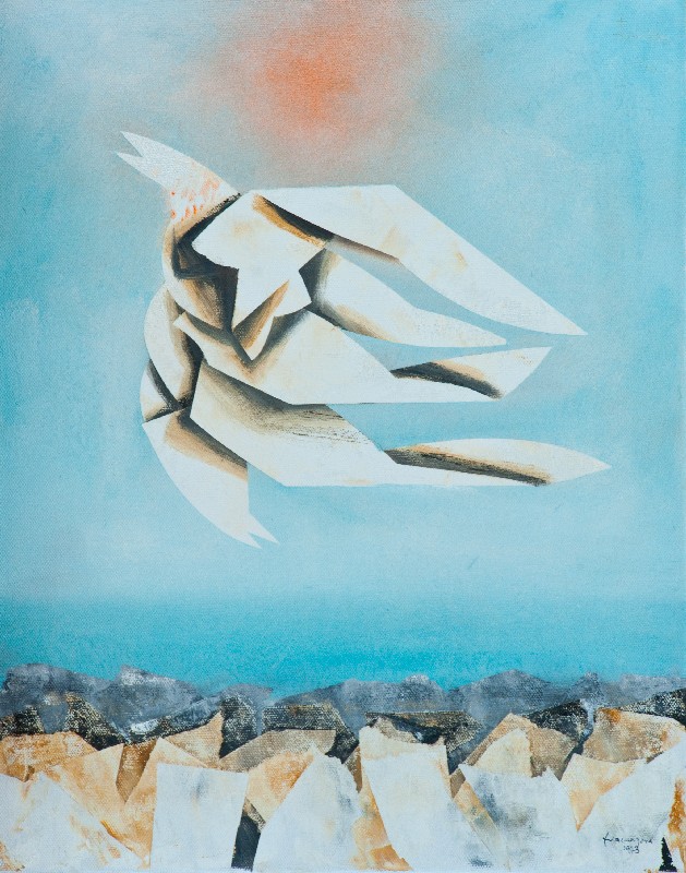 Francesco Vaccarone (La Spezia 1940) VOLO DI GABBIANI ALL'ALBA, 1973 Olio su tela, cm. 50x40 Firma e data in alto a destra. Sul verso: firma, data e titolo; Etichetta dell'Artista con descrizione; Etichetta "Galleria Menghelli"; Etichetta "Museo Pinacoteca San Francesco, Repubblica di San Marino, Mostra Antologia, 1 - 31 Luglio, 1978". Sul pianetto: timbro dell'Artista; Etichetta "Museo di Santa Apollonia", Venezia. Autentica dell'Artista su foto con Archivio n° 1033/B.