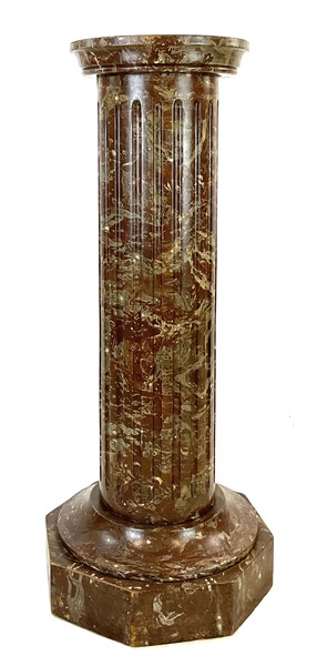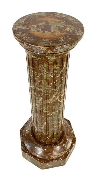 Colonna porta busto in legno dipinto a finto marmo, fusto scanalato e base otta