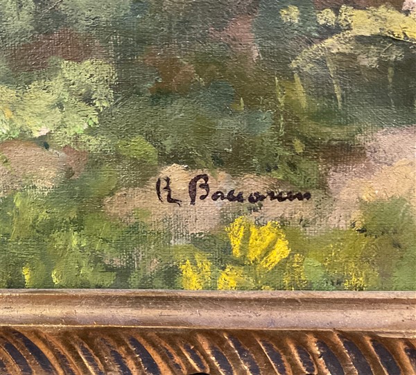 Lotto 1730 | Gian Rito Baccarini "Nel bosco" olio su tela (cm 50x70) reca firma non coeva in