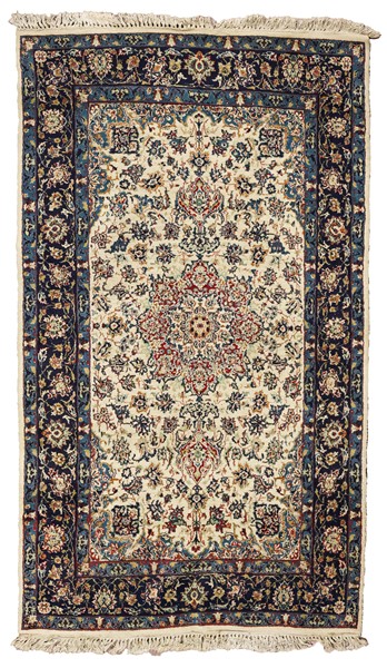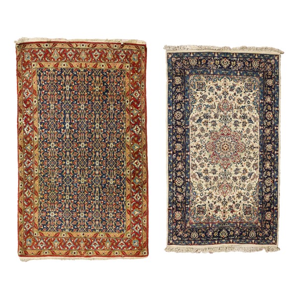 Lotto composto da un tappeto Isphan, Persia, secolo XX con decoro Herati su fondo blu (cm 217x136), e un tappeto Nain, Persia, secolo XX, decoro con medaglione con puntali su fondo bianco (cm 183x110) (difetti)