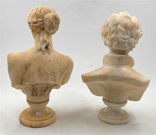 Lotto composto da busto di gentiluomo in alabastro (h cm 35,5) e busto di Venere in materiali vari (h cm 36,5) (lievi difetti)