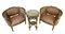 Lotto composto da una coppia di poltrone a pozzetto ed un tavolino in legno int