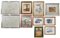Cartone contenente due tecniche miste su tela, una su vetro e sette tecniche miste su carta, di soggetto, autore e misure diverse (misura max cm 32x47) alcune opere firmate