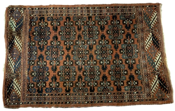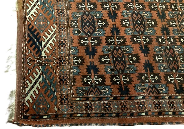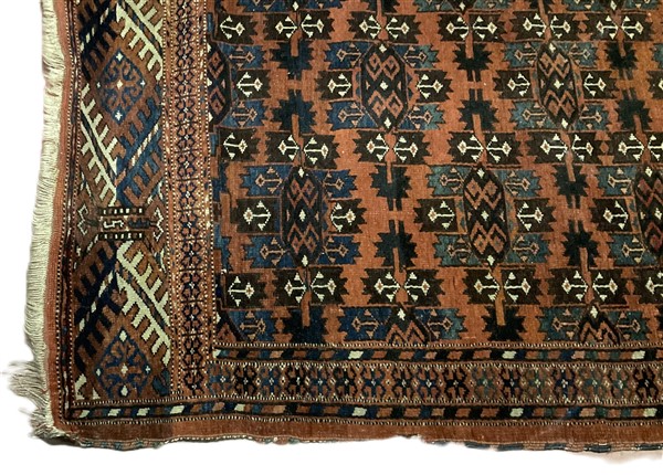 Tappeto Yomut, Turkestan occidentale, inizio secolo XX. Decoro con Memling Gül