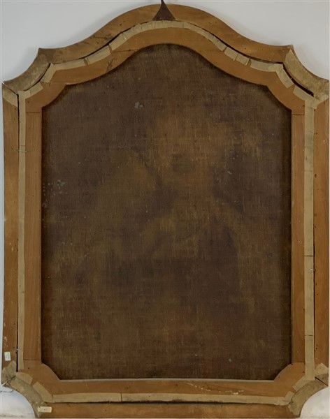 Scuola del secolo XVIII "Madonna con Bambino" olio su tela sagomata (cm 96x74)