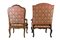 Due poltrone in noce con braccioli e gambe mosse. Secolo XVIII. Rivestimento in