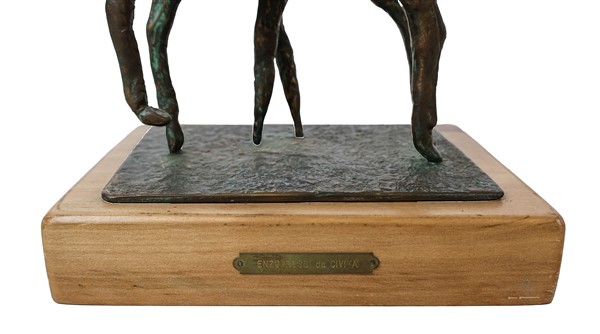Enzo Rossi da Civita Scultura di figura con cavallo in bronzo, poggiante su base