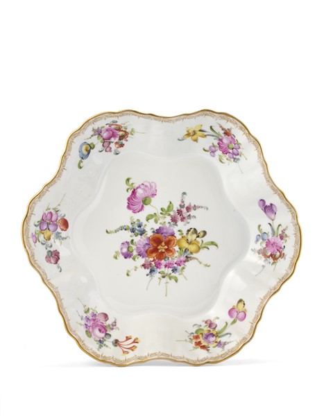 Manifattura del secolo XIX. Centrotavola a profilo mistilineo in porcellana pol