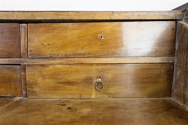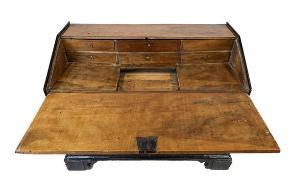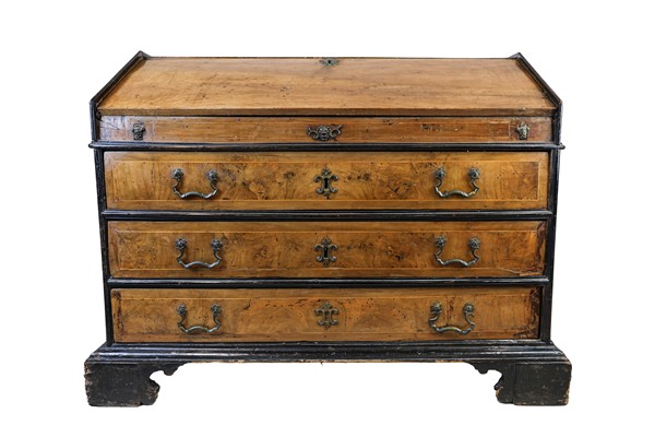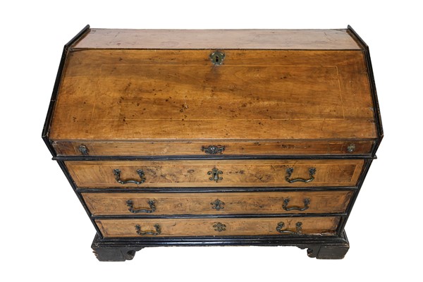 Lotto 1853 | Ribalta in noce filettata in legno chiaro con fronte a tre cassetti e calatoia