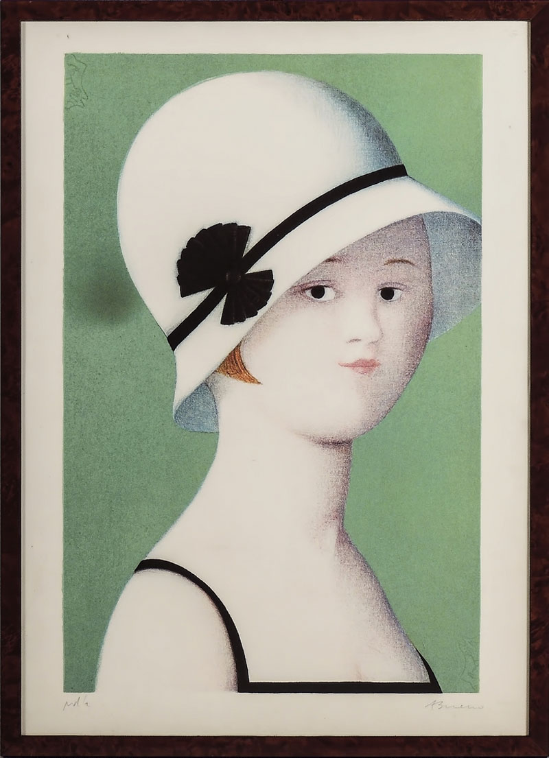 ANTONIO BUENO (1918-1984) Ritratto di ragazza con cappello - Portrait of a Girl with Hat litografia - lithograph, prova d'autore, firmata, in cornice cm 62x40